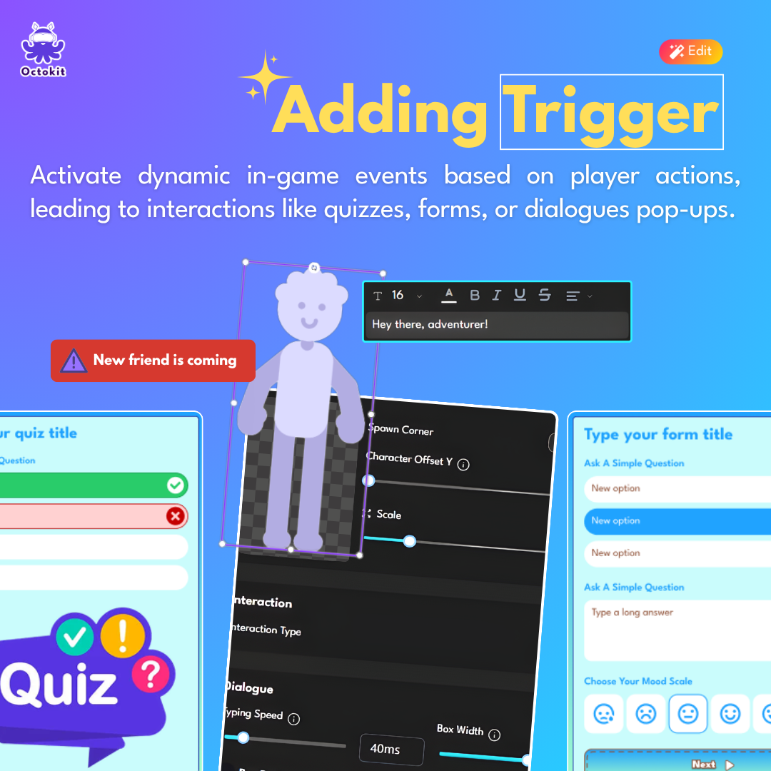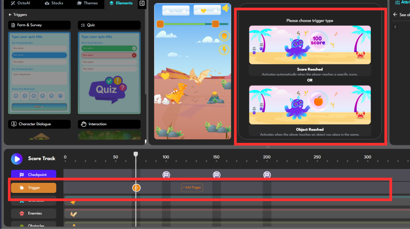 Triggers are the heart of any game built on Octokit. Not graphics. Not scoring systems. Not even a beautiful interface. A trigger is the moment a story happens—when the player’s character interacts with something on screen and a narrative begins. Octokit offers 5 types of triggers. Each creates a different kind of moment. Understanding when