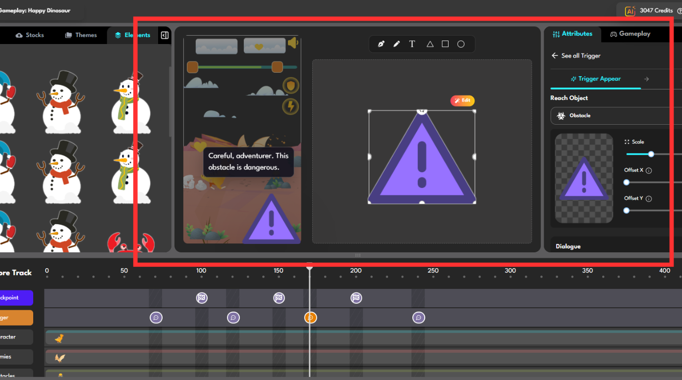 A trigger is the moment a story happens—when the player’s character interacts with something on screen and a narrative begins.