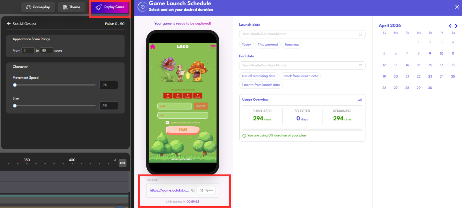 Moreover, you can also preview all the gamification campaign flow using the Test Link Feature to test out on Mobile and Desktop Version: